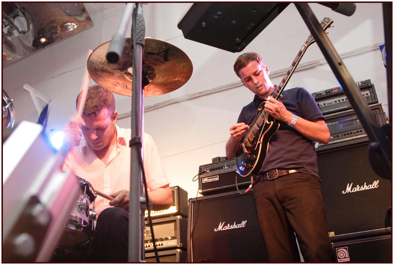 John Stanier (drums) and Dave Konopka (guitar, bass) of Battles.